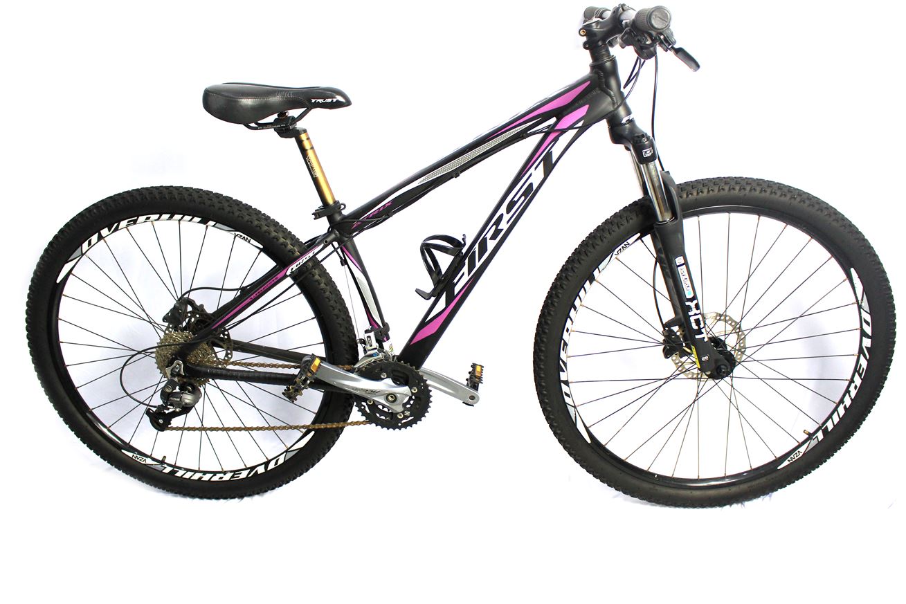 Bicicleta USADA de MTB Aro 29 da marca FIRST, modelo ATRIX com grupo SHIMANO. Quadro construído todo em alumínio. Os componentes são SHIMANO ACERA de 27 velocidades (3x9) marchas, Suspensão SR Suntour XCT e Cokpit ABSOLUTE em Alumínio. Disponível no tamanho (P).
