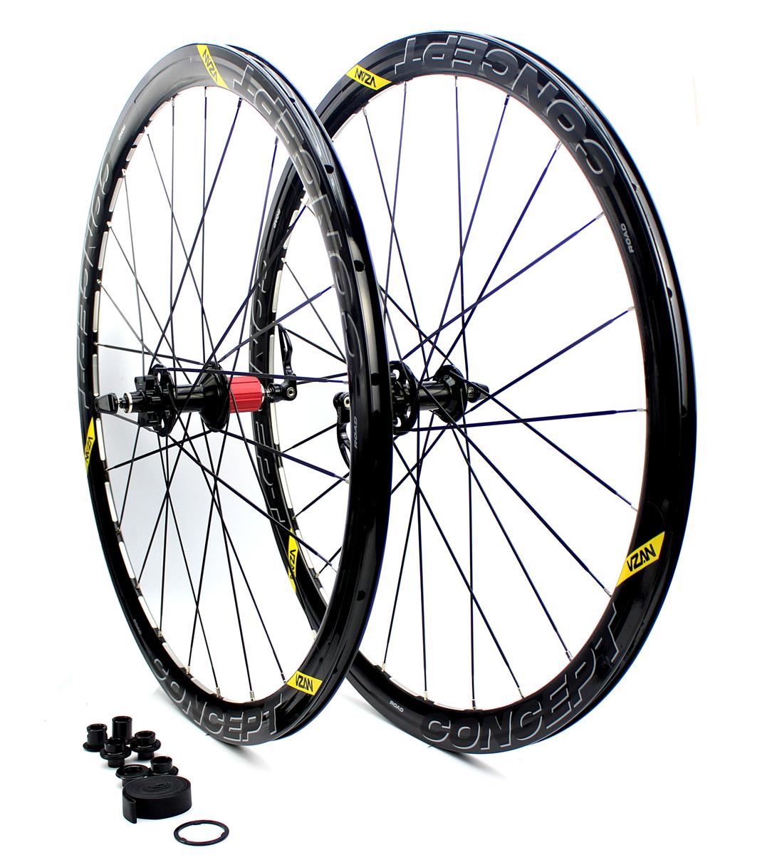 A Roda Concept é um modelo de alumínio AERO. Seu aro com 38mm de altura é um modelo de entrada na linha Aerodinâmica. Este é o segundo modelo VZAN para Ciclismo de Estada utilizando freios a disco. O cubo traseiro possui o sistema Floating com 3 molas independentes, mais preciso e mais leve, também possui adaptadores para bicicletas de eixo passante de 12mm. Este sistema já é consagrado nos modelos para mountain bike e agora entra nos modelos para ciclismo de estrada. Seu freehub é compatível com o sistema Shimano ou Sram de 8 à 11 velocidades. Peso indicado do usuário é de até 130kg.